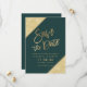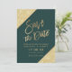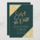 Gold typography on customizable emerald green gold glitter color block, and faux gold geometric stripes chic save the date wedding , perfect for elegant, stylish wedding,