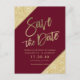Gold typography on customizable marsala red gold glitter color block, and faux gold geometric stripes chic save the date wedding , perfect for elegant, stylish wedding,
