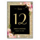 Gold Glitter Sparkles Floral Wedding Table Number