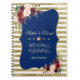 Royal Navy Blue, Sparkling Gold Glitter Stripes, Blush Burgundy Floral card design. It features an elegant Royal Navy blue shape with a faux gold foil frame, faux gold glitter stripes, gorgeous blush Burgundy watercolour flowers and fonts, all on a faux gold glitter stripes background. Use Customize tool to add your info. For matching items, please, visit my Royal Navy Blush Floral Gold Collection.
