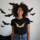 Celebrate halloween with our cute and sassy faux gold glitter bat t-shirt. The design features our own faux gold glitter bat. The reverse side features a simple faux gold stylized bat placed on the back of the t-shirt. All illustrations contained in this fun, sassy halloween bat theme t-shirt are hand drawn original artwork by Moodthology.
