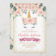Gold Glitter Teal Peach Floral Unicorn Birthday Invitation