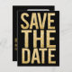 Faux Gold Glitter Save the Date Typography on bold black background. a bold, strong, trendy, stylish, designer typography Wedding Save the Date Postcard template to suit most weddings. Whether black and white is your theme, you're having a night wedding, a gold glitter wedding, a modern wedding... this affordable designer post card design is for you!