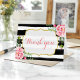 Gold Glitter Watercolor Floral Stripes Thank You Card