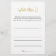 This girly style bridal shower game 'Who am I' will be loved by most of the brides-to-be. The romantic design features golden lettering and a rosegold marble background on the back of the flyer. You can personalize the back of the card with the name of the future bride and the date of the bridal or wedding shower. Add your custom wording to this design by using the "Edit this design template" boxes on the right-hand side of the item, or click the "Customize it" button to arrange the text, change the fonts, font color, and background color.