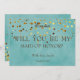 This 5" x 7" green gold glitter beautiful MAID OF HONOR invitation card. This is best for the bride, who loves gold colors and polka dots. It is a truly fun way to ask your very lover or girl friend to be a part of your bridal.