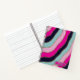 If you love taking notes and writing composition whether for personal, school or business purposes, you might consider adding a notebook cover that will catch your eye. This contemporary digital art features a fun groovy visual chic theme through the multicolored scheme composed of hot pink, pastel pink, light and dark blue tones matched with the artistic wavy striped lines. The gold foil glittery curves incorporated to it add creativity to the graphic details. You can personalize this by putting a name, subject or any text you prefer inside the cute oblong shape label frame.