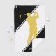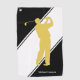 The golfer in your life will love this personalized golf towel! A gold silhouette image of a golfer in full swing is at the center. The image is placed on a background diagonal of black contrasted with white. At the bottom right is your custom text in white. Very classy and distinctive!