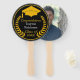 Personalized photo hand fans for that graduation audience event that you know is going to be hot. Classic image of a gold grad cap and laurel wreath accented with gold color border and your own text. Your grad's photo on the reverse side. See matching invitations, yard signs, party supplies and other color groups also available in this same design. Photo credit: Michelle Raponi from Pixabay