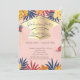 Gold Grad Cap,Palm Leaves Flowers Graduation Invitation