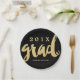Stylish, modern typography in gold reads "grad" with name underneath and 201X above. The background color (shown in black) can be customized to any color you'd like. Fun, bold, classy - perfect! Product does not contain actual gold foil.