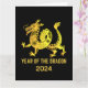 Year of the Dragon gold gradient Chinese zodiac animal black New Year card. Perfect for a Chinese New Year greeting card. Personalize it with your name.