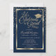 Gold Graduation Cap Diamonds Navy Blue Graduation Invitation