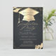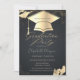 Gold Graduation Cap Frame Confetti Gray Invitation