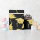 Black and gold school colors, gold graduation caps thrown in the air for both him and her. Nice graduation party gift wrap for a grad party, for a graduate from a high school, college, or university with school colors of Black and gold.