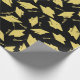 Gold Graduation Caps in the Air on Black Fun Party Wrapping Paper