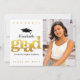 Announce to the world that your favorite grad has reached their milestone with this stunning, simple, modern, personalized announcement. Bold, graphic, faux gold foil typography and a black cap icon overlay a white background. On the right hand side, add a photo of your choice. Personalize the custom text with your graduate’s name, school name, and class year. Faux gold foil on the back. Matching and coordinating thank you cards, cap toppers, fans, napkins, plates, banners and other graduation goodies are also available in this trendy and stylish collection. Guaranteed to add stylish fun to their special occasion!