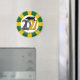 Well Designed High Quality Magnet. Colors are Vibrant Clear Excellent good size Diameter Circumference Fonts Red Folio Bold Clover Green Outline Puffy White Interior Image