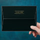 Elegant Christmas holiday envelopes feature a design of pine branches, green and gold Christmas ornaments and ribbons on a deep green background with your return address on the back and a decorative gold box to write in your recipient's address. MATCHING invitations and more items in our collection.
