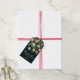 Elegant Christmas holiday party favor gift tags feature pine branches, green and gold Christmas ball ornaments and ribbons on a black background with your details in chic lettering, perfect for your festive holiday gathering. MATCHING items in our collection.