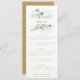 Compliment your classic wedding event with this gold green eucalyptus wedding menu. The design features elegant watercolor green and gold eucalyptus leaves.