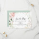 This gold green foliage floral horizontal wedding save the date is perfect for a modern wedding. The design features hand-drawn gold and green botanical foliage with pink, blush and white flowers, inspiring natural beauty.