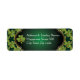 Gold, green Irish clover and frame wedding label featuring a green clover with gold outline, a gradient green frame with gold outline and a pattern with shamrocks. This modern, elegant and stylish template design is totally customizable and is perfect for Saint Patrick's or St. Patrick's Day Irish weddings.