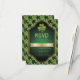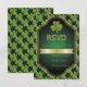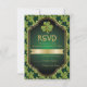 Gold, green Irish clover and frame wedding RSVP response / reply card featuring a green clover with gold outline, a gradient green frame with gold outline, a gold banner and a pattern with shamrocks. This modern, elegant and stylish template design is totally customizable and is perfect for Saint Patrick's or St. Patrick's Day Irish weddings.