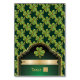 Gold, green Irish clover and frame wedding folded place card featuring a green clover with gold outline, a gradient green frame with gold outline, a gold banner and a pattern with shamrocks. This modern, elegant and stylish template design is totally customizable and is perfect for Saint Patrick's or St. Patrick's Day Irish weddings. Fold it along the center to have a folded tent style place card.