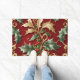 Beautiful Gold Green Leaves Red Christmas Holiday Doormat