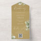 Gold Greenery Floral QR Code Monogram Wedding All In One Invitation