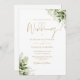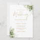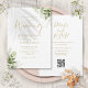 Gold Greenery Floral QR Code Script Wedding Invitation