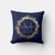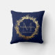 Gold Greenery Monogram Navy Blue Wedding Keepsake Throw Pillow