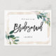 A stunning boho faux gold and greenery design will you be my bridesmaid postcard. Easy to change the text details to your own. Lots of matching stationery in this pretty collection. Please visit my shop to see the full range including maid of honor/honor and flower girl.