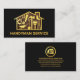 An all black cover is accentuated by a creative faux gold home made from gold handyman construction tools. These gold tools can represent some of the services that you might offer. Behind the gold tools is a brown timber wood layer. The business name is located at the base of the card.