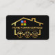 An all black cover features a creative gold building frame with a colorful window. Just below the window lies the business name and a slogan caption option which you can change. Towards the foundation of the building are gold handyman tools. The tools represent some of the services that you might offer e.g. the hammer for home repairs-remodeling, the bulb for electrical works and the leaking pipe for plumbing services.