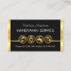 A dark cover is encapsulated by gold stripes at its left and right borders with a gold line near the base. ; Here lies an array of gold handyman tools which can represent some of the services that you offer e.g. the drill-measuring tape can represent home remodeling-construciton etc. Just below this logos are the contact details. Your prestigious name and the business name "HANDYMAN SERVICE" which you can change, is at the top.