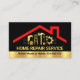 An all black cover features a red rooftop with a gold striped layer near the base. Just underneath the rooftop is a gold handyman tools motif followed by the business name "HOME REPAIR SERVICE" in gold. Your contact details are located at the gold striped piece.