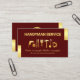 A dark red cover is encapsulated by gold tabs at the upper and lower corners of the card. It features a gold handyman tools motif near the center.