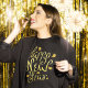 Black basic long-sleeve t-shirt with an image of “Happy New Year” in fun gold lettering. See the entire New Year Apparel collection under the APPAREL category in the HOLIDAYS section.