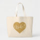 Cute Personalized Bride tote bag for bride to be features color editable gold heart shape, modern scrip and diamond ring, with custom name, great bridal shower gifts to store all the essentials for the wedding day.