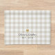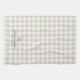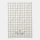 Custom-designed modern rustic farmhouse style kitchen hand towel featuring name design on beige buffalo check pattern.
