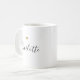 Custom-designed coffee mug featuring modern black calligraphy with elegant gold heart design.