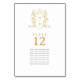White and gold crest drawing art monogram table number. Edit this wedding table number with your own guests' names. Tables have to be added to your cart one at a time, discounts may apply to multiple cards. Original design and crest with heart crown, entwined with leaves and berries hand drawing by Sarah Trett for www.mylittleedenweddings.com exclusively on Zazzle.
