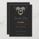 Save the Date with a design of two grooms, standing on either side of a gold heart. This item is part of a wedding set that includes a wedding invitation, rsvp card, and more. (The gold elements in the set are faux gold and not gold foil.)
