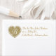Pretty wedding return address labels, done in white, with a gold tone heart, on the left side, with a white one letter monogram. Personalize the golden brown text and monogram, to suit your needs.