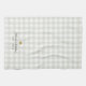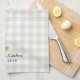 Custom-designed modern rustic farmhouse style kitchen hand towel featuring name design on soft sage buffalo check pattern.