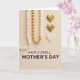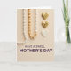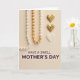 Designed with a soft, creamy beige background, this card features a neatly arranged flat-lay of jewelry-like details that feel tender and close, like a quiet thank-you shared between loved ones ❤️. In the upper left corner, two curved strands of round beads drape gently, one in bright white and the other in warm gold, catching the light in a subtle glow. Their smooth shine sits calmly against the matte backdrop, giving the scene a cozy, intimate mood. On the right side, three heart shapes are stacked in a vertical line, suggesting a sweet connection and a caring bond. The top two hearts are textured gold with a hammered look that flickers with tiny highlights, while the bottom heart is off-white with a softer, stone-like surface. Along the bottom edge, the message “SWELL MOTHER’S DAY” is set in dark lettering, centered and easy to read. The gold hearts sit to the right of the bead strands, with the off-white heart at the bottom of the trio 🌼.