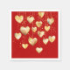 Romantic gold hearts on a string for Valentine's Day or any special occasion. Valentine's Day napkins that can be used for parties and for every day during February. Gold hearts appear to be hanging from the top of the paper napkin. Some gold hearts have a delectate red swirl on them for extra flair. The background is a bright and bold Cornell red. Enjoy! Designed by mw1deisgnsart.