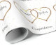 Wedding wrapping paper done in white, with gold double hearts and gold stars. Personalize the names with the bride and groom's for a truly personalized way to present them their wedding gift.